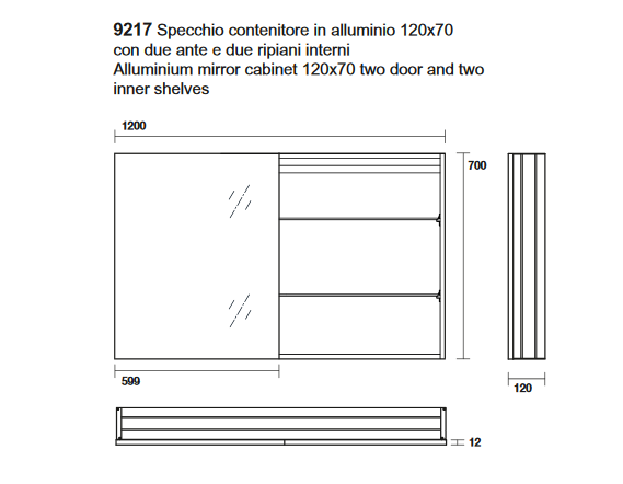 - Дзеркальна шафа алюмінієвий 120х70 см з двома дверцятами і двома полками всередині