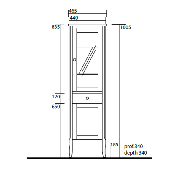 Шафа-пенал з вітриною Kerasan Retro, особливості:
