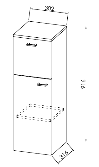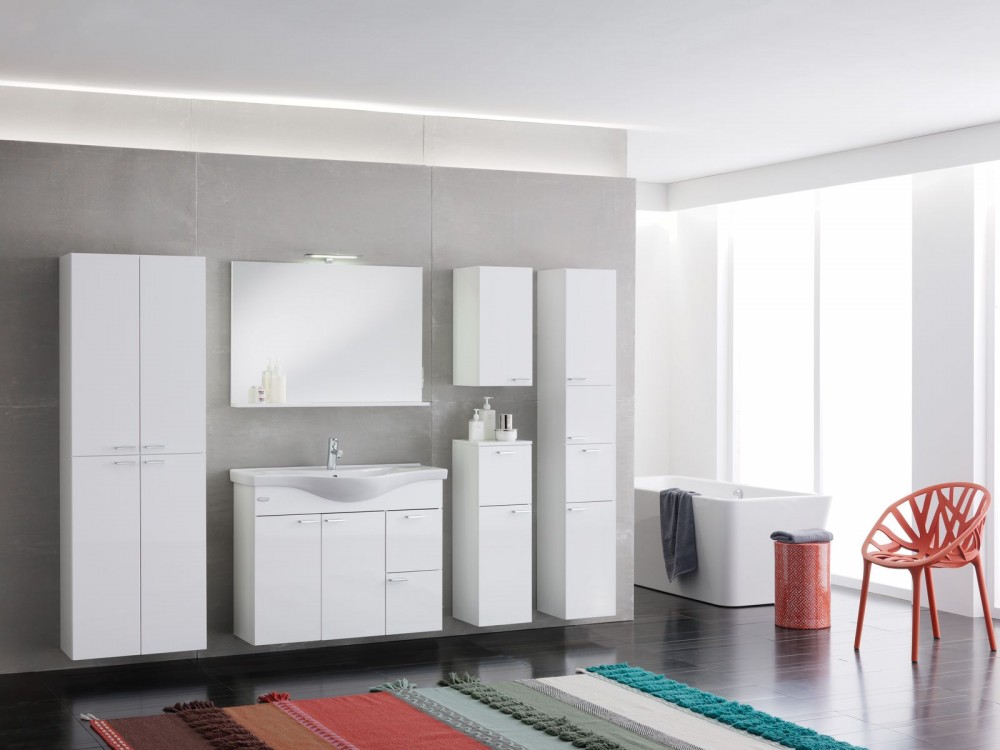 1) Шафка для ванної Kolpa-san Fiona F 921 підвісний 30.2х91.6 см ДСП з покриттям з ПВХ білий
