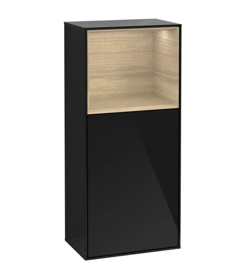 Шафка для ванної Villeroy & Boch Finion 41,8х93,6х27 см петлі зліва з підсвічуванням МДФ глянсовий чорний лак/шпон дуба F500PCPH