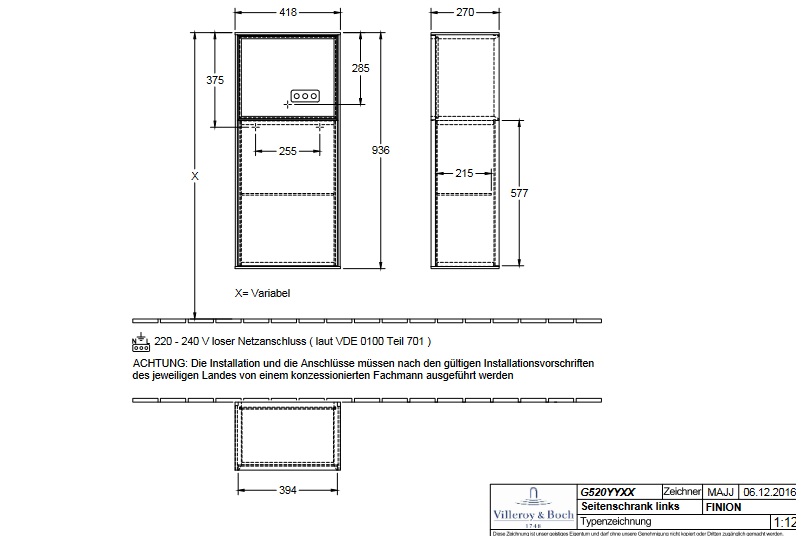 Шафка для ванної Villeroy & Boch Finion 41,8х93,6х27 см петлі зліва з підсвічуванням МДФ світло-сірий матовий лак/глянцевий білий лак G520GFGJ