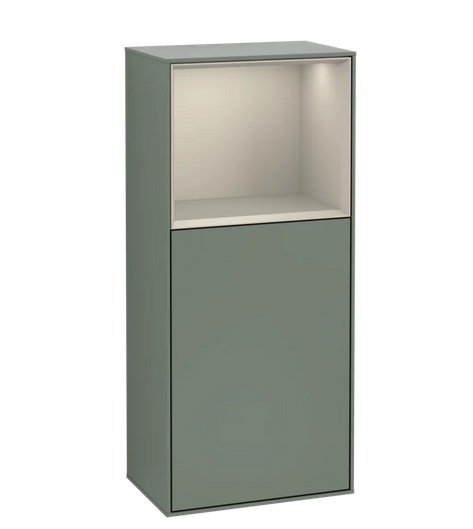 Шафчик для ванної Villeroy & Boch Finion 41,8х93,6х27 см петлі праворуч з підсвічуванням МДФ оливковий матовий лак/пісок матовий лак