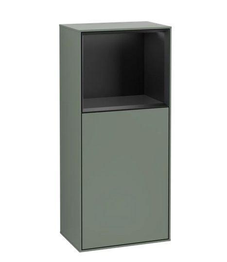 Шафка для ванної Villeroy & Boch Finion 41,8 х93, 6х27 см петлі праворуч з підсвічуванням МДФ оливковий матовий лак/чорний матовий лак F530PDGM
