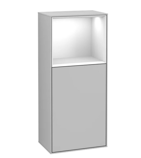 Шафчик для ванної Villeroy & Boch Finion 41,8х93,6х27 см петлі праворуч з підсвічуванням МДФ світло-сірий матовий лак/глянсовий білий лак