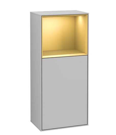 Шафчик для ванної Villeroy & Boch Finion 41,8х93,6х27 см петлі праворуч з підсвічуванням МДФ світло-сірий матовий лак/золотий матовий лак