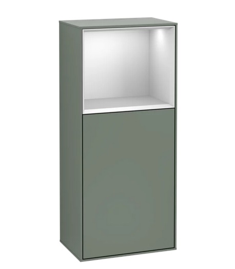 Шафка для ванної Villeroy & Boch Finion 41,8 х93, 6х27 см петлі праворуч з підсвічуванням МДФ оливковий матовий лак/білий матовий лак G530MTGM