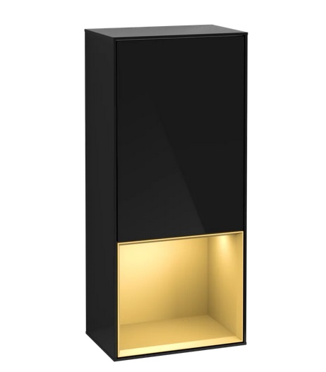 Шафка для ванної Villeroy & Boch Finion 41,8х93,6х27 см петлі праворуч з підсвічуванням МДФ глянсовий чорний лак/золотий матовий лак F550HFPH