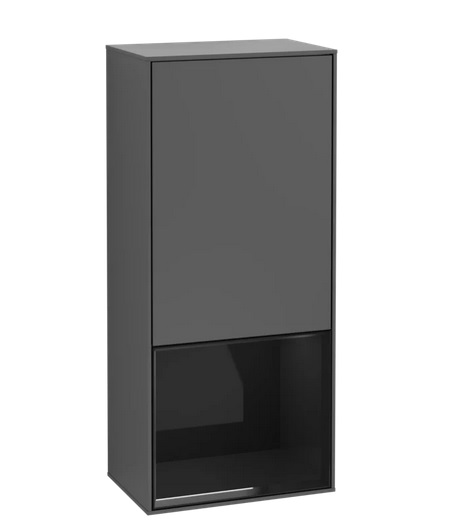 Шафка для ванної Villeroy & Boch Finion 41,8х93,6х27 см петлі праворуч з підсвічуванням МДФ антрацит матовий лак/глянцевий чорний лак F550PHGK