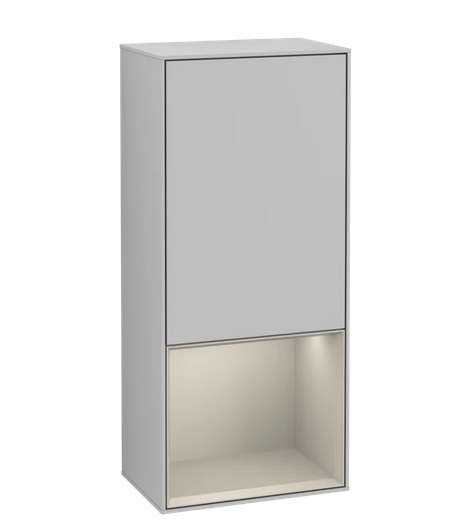 Шафчик для ванної Villeroy & Boch Finion 41,8х93,6х27 см петлі праворуч з підсвічуванням МДФ світло-сірий матовий лак/пісок матовий лак