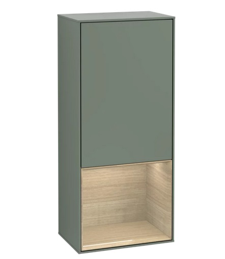 Шафчик для ванної Villeroy & Boch Finion 41,8х93,6х27 см петлі праворуч з підсвічуванням МДФ оливковий матовий лак/шпон дуба