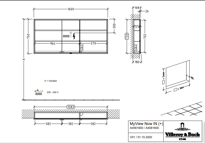 Шафка для ванної Villeroy & Boch My View Now 160x75 см з підсвічуванням алюміній/дзеркало A4561600