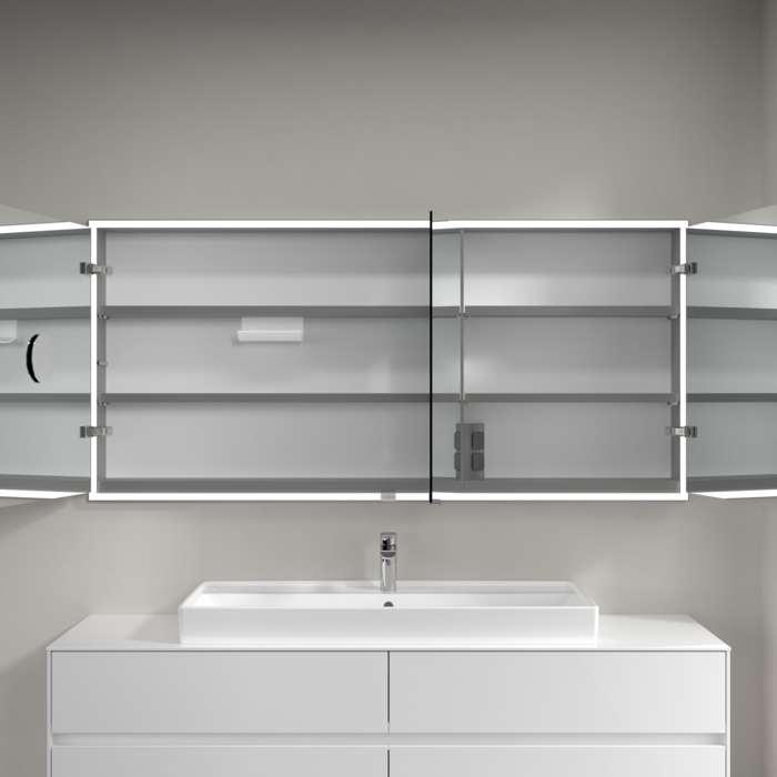 My View Now — дзеркальна шафа з оптимальним місцем для зберігання, освітленням та дизайном. У дзеркальній шафі My View Now всі важливі функції доведені до досконалості. Кожен куточок цієї універсальної моделі було вдосконалено та оптимізовано. Алюмінієві полиці регулюються по висоті і дозволяють якнайкраще використовувати місце для зберігання. Світлодіодна стрічка по периметру забезпечує чудове освітлення у будь-якій ситуації. Завдяки компактним вбудованим розеткам електричні зубні щітки та бритви завжди будуть готові до роботи. При зовнішньому монтажі в дзеркальній шафі передбачено навіть розетку, розташовану із зовнішнього боку. Завдякицим та іншим інтелектуальним рішенням шафа My View Now розширює ваші можливості під час щоденних гігієнічних процедур у ванній.