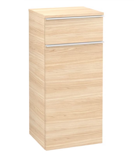 Шафка для ванної Villeroy & Boch Venticello 40,4х37,2 см петлі праворуч ДСП в'яз друкарський/ручка алюміній білий A95012PN