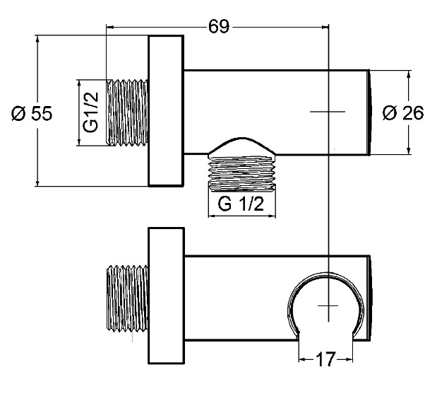 - з'єднання для шланга з настінним тримачем для душу DN 15