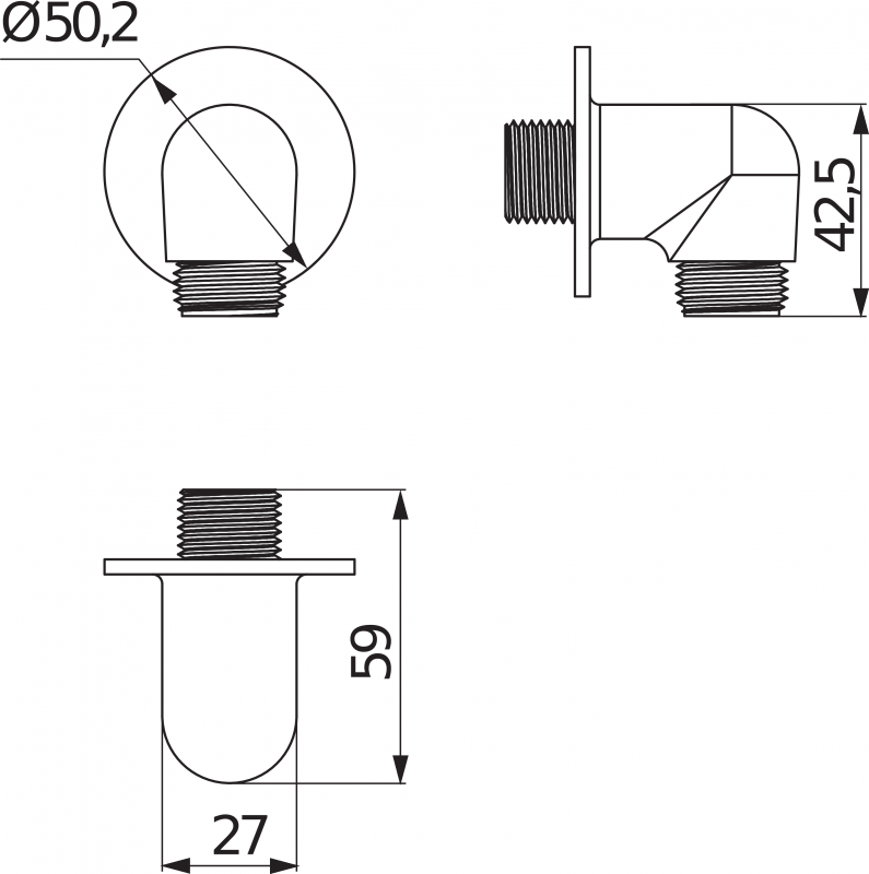 1) Шланговое під'єднання Jika Rio кутовий 1/2 "хром