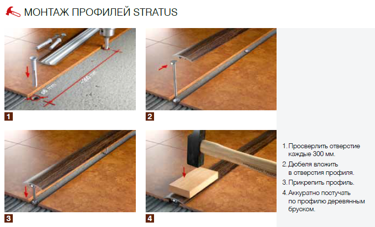 Сходові профілю SALAG це перш за все: профілю виконані з ПВХ - Cirrus, алюмінію - Stratus. Головне завдання сходових профілів, це перш за все естетичне оформлення внутрішніх і зовнішніх сходових кутів, а також надійний захист відпошкоджень. Завдяки нашим порогам Ви зможете пересуватися по сходах без всяхіх побоювань. Стабільне та естетичне кріплення профілів можливо тільки завдяки запатентованій системі. Монтажні дюбелі залишаються непомітними, а профіль стабільно прикріплений. Деякі моделі профілів Stratus кріпляться без свердління (кріплення з по- міццю стрічки або клею).