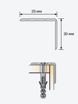 Сходовий профіль S02 з подовженою вертикальною частиною, краще захищає кути і маскує нерівності країв ступенів.