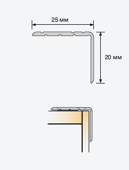 Сходовий профіль S02 з подовженою вертикальною частиною, краще захищає кути і маскує нерівності країв ступенів. З двосторонньої КЛЕЮЩИЕ стрічкою.