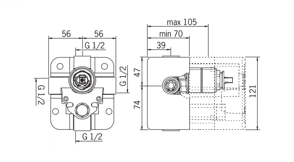 Прихований вбудовується корпус 50000100 HANSAVARIO змішувач, відгалуження зверху чи знизу