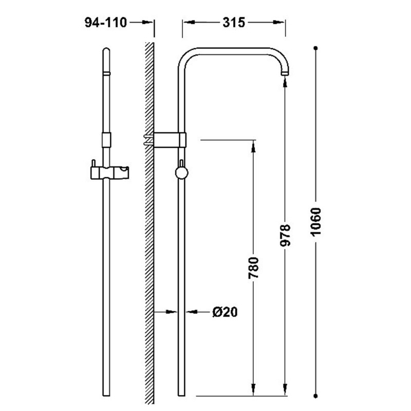 - душова штанга для настінного термостатичного змішувача