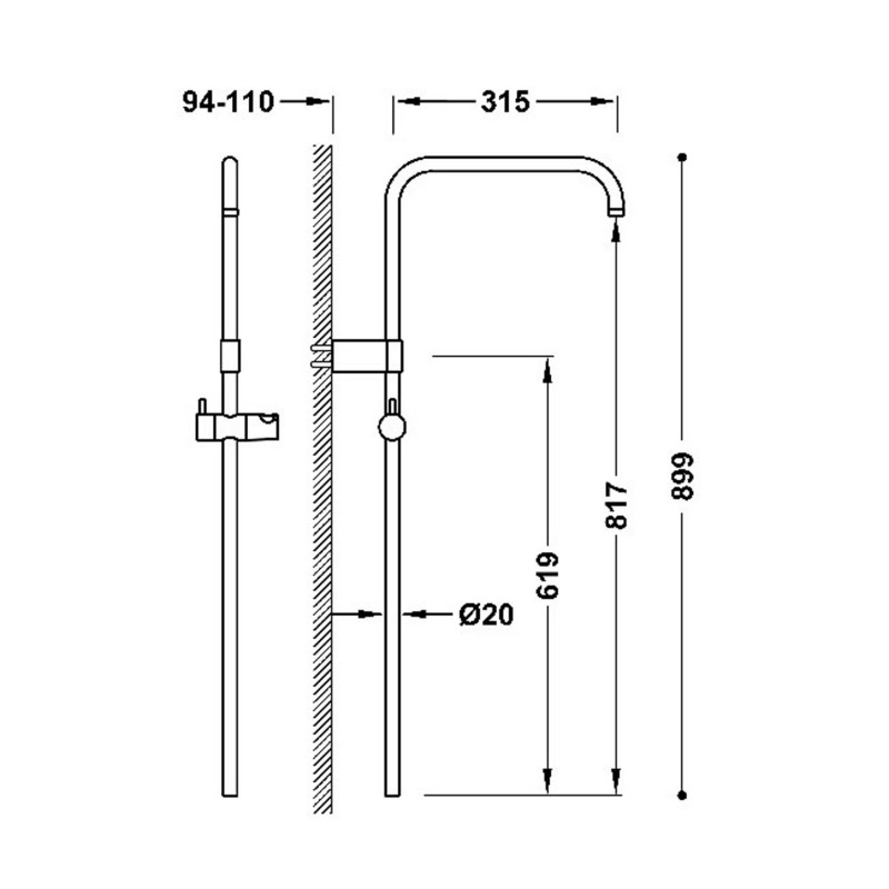 Штанга для душу Tres Over-wall 89,9 см матовий латунь чорний