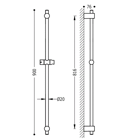 - Штанга для душа з 2 регульованими консолями для фіксації