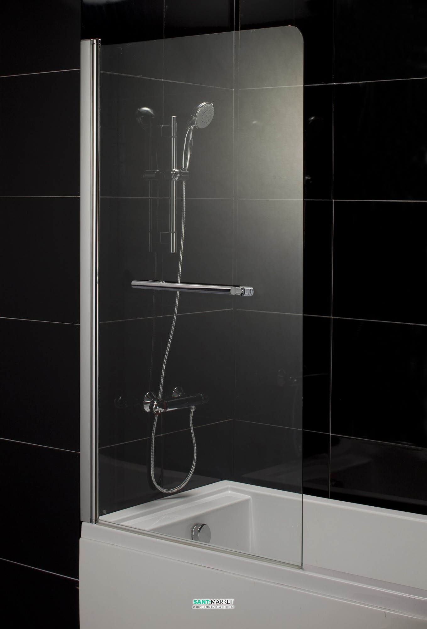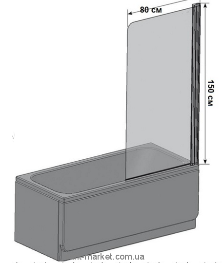 Штора на ванну Eger 80х150 скло тоноване ліва 599-02L grey