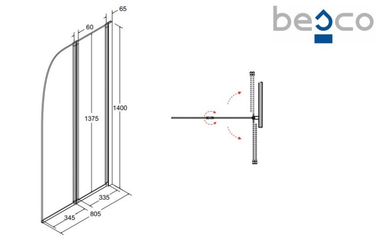 Шторка для ванни Besco Ambition 2 80,5х140 см хром/прозоре скло PA-2S