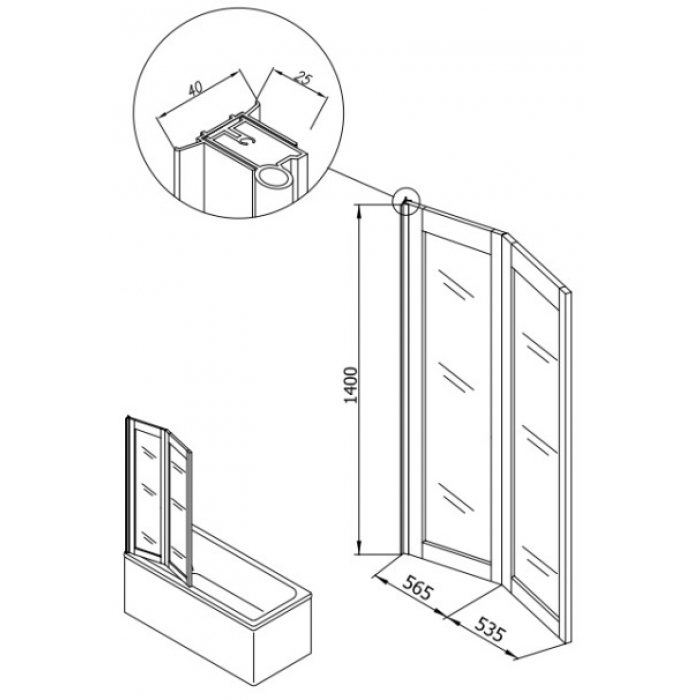 Шторка для ванни Kolpa San Quat TP 110 профіль білий / полістирол матовий