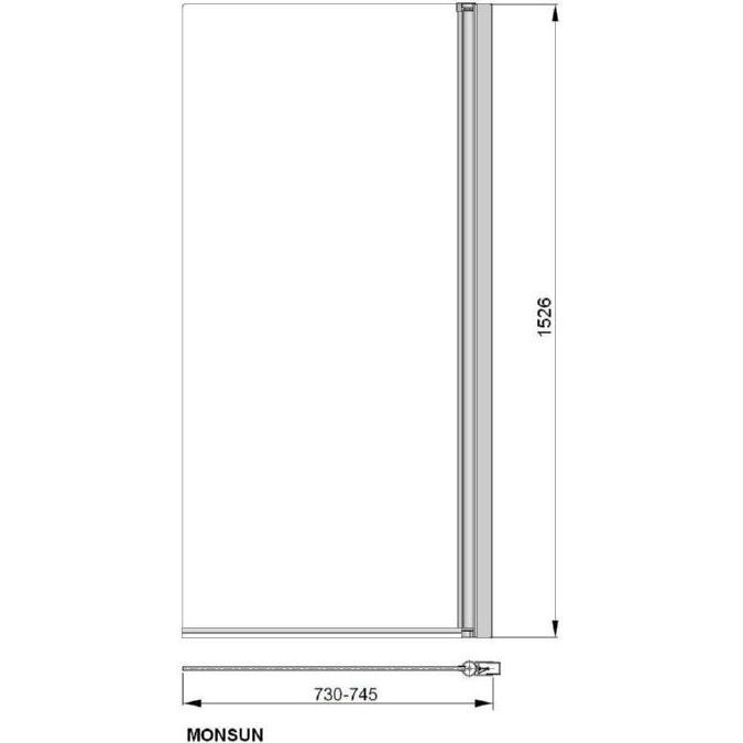 1) Шторка для ванни PoolSpa Monsun 73х153 left / right скло прозоре / профіль хром