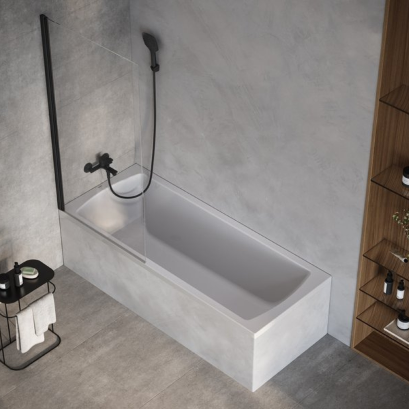 Шторка для ванни Ravak X-Point Slim XPSVS1 80х140 см профіль чорний прозоре скло X75OM30FZ1
