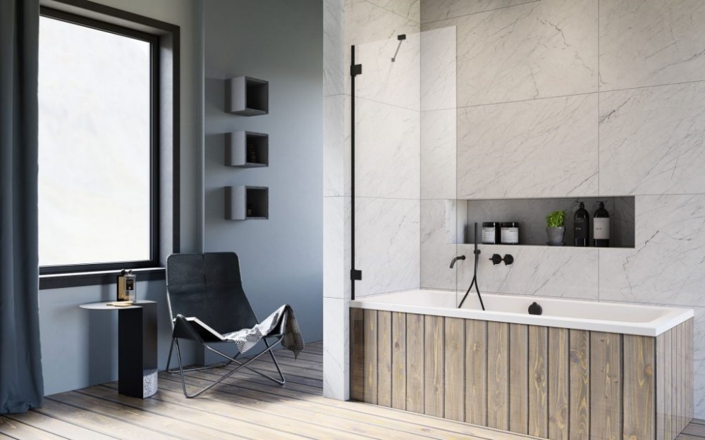 1) Шторка для ванни Radaway Essenza Pro Black PNJ II 50 см чорний / прозоре скло