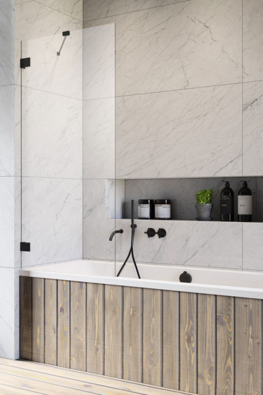 1) Шторка для ванни Radaway Essenza Pro Black PNJ II 90 см чорний / прозоре скло