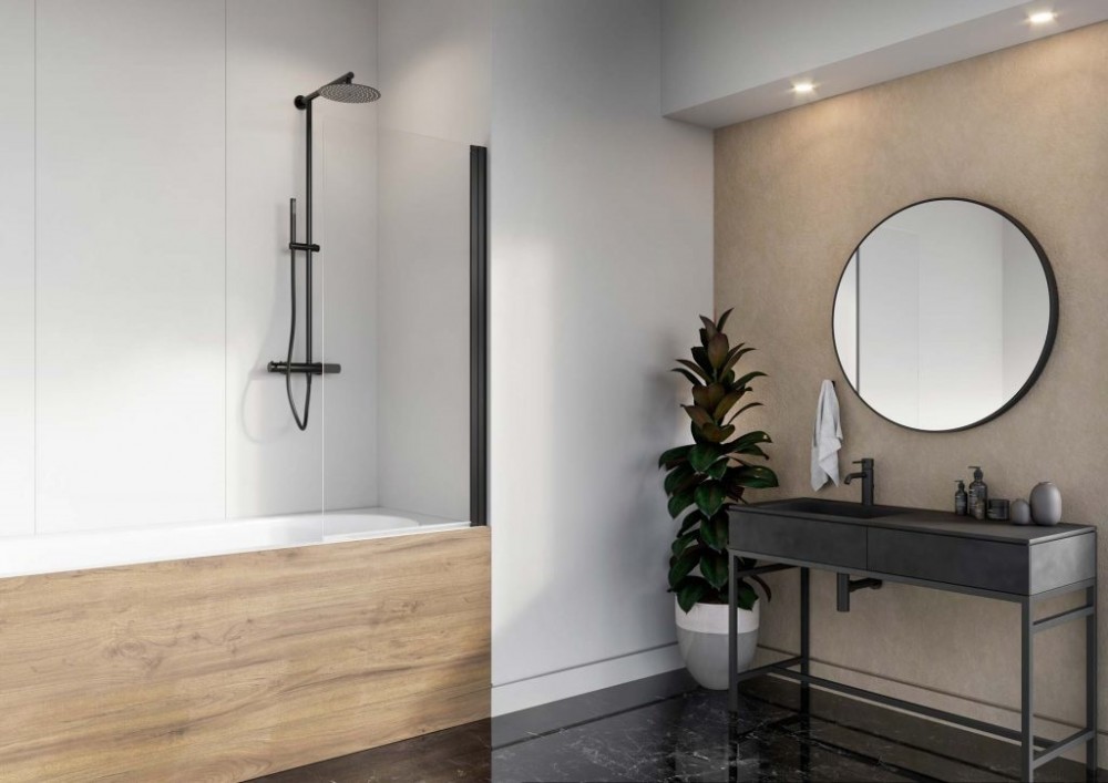 1) Шторка для ванни Radaway Nes Black PNJ I 60 права чорний / прозоре скло
