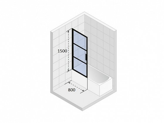 1) Шторка для ванни Riho Grid GB501 80х150 ліва чорний / прозоре скло