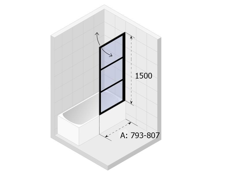 1) Шторка для ванни Riho Grid GB501 80х150 права чорний / прозоре скло