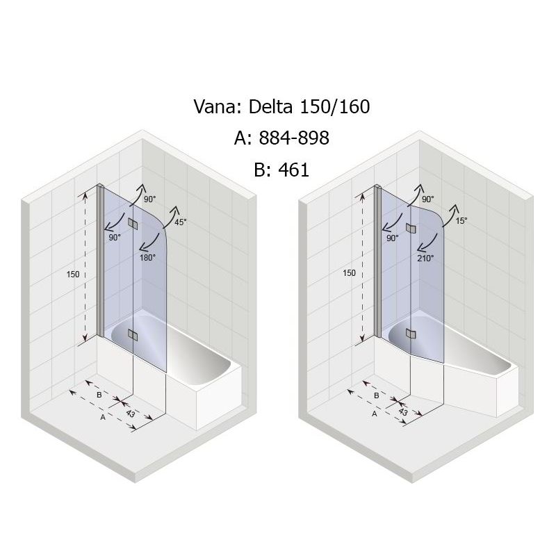 1) Шторка для ванни Riho Novik Z500 Delta хром / прозоре скло