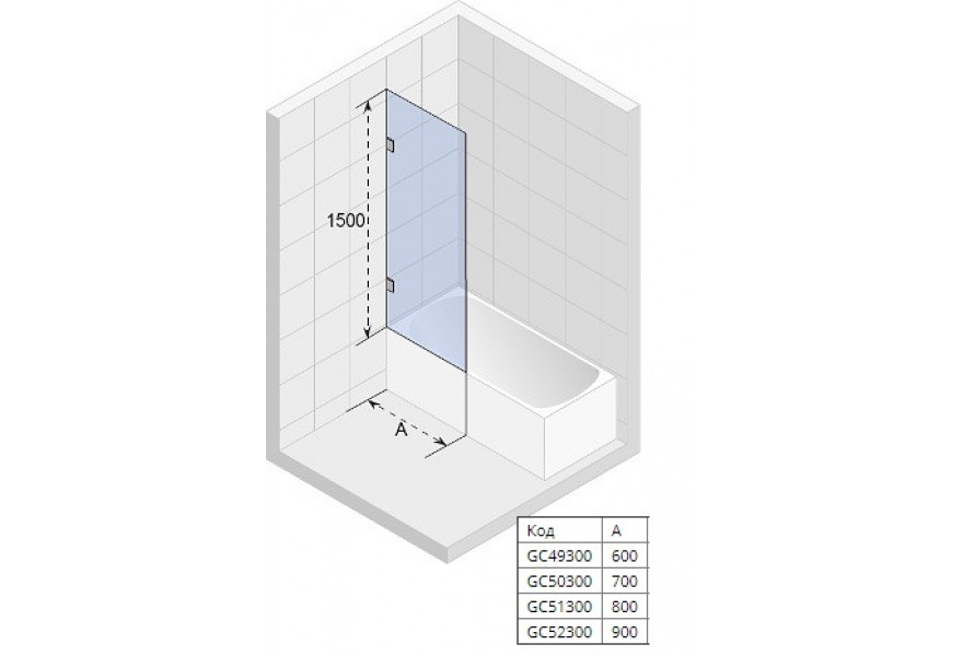 1) Шторка для ванни Riho Scandic S409-60 прозоре скло