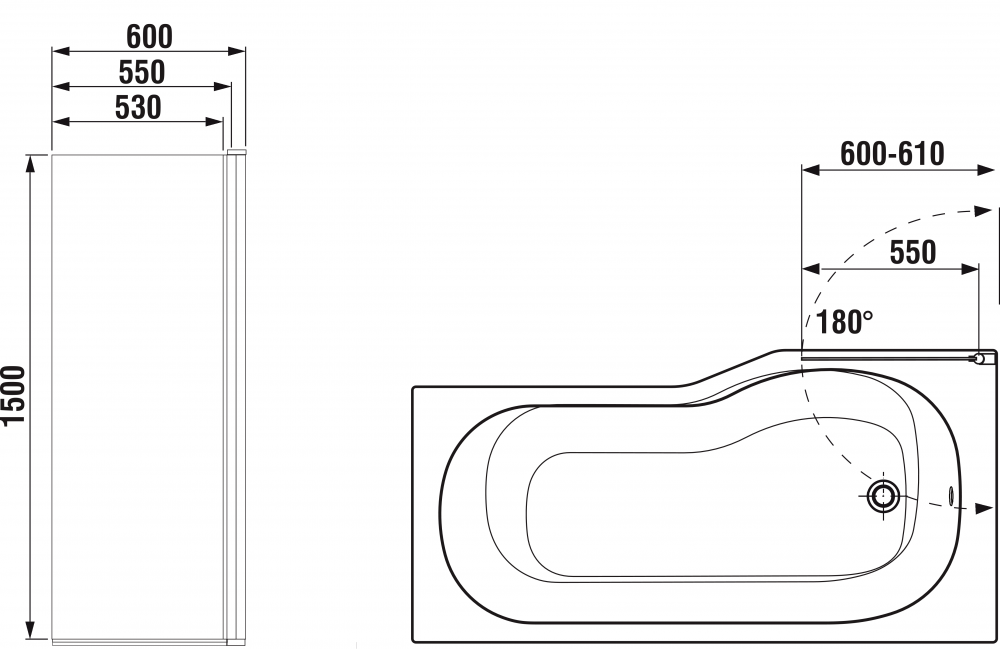 1) Шторка для ванни Jika Tigo 60х150 см пряма скляна ліва