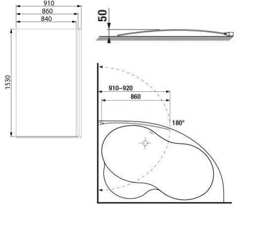 1) Шторка для ванної Jika Tigo 91х153 см скляна ліва / права