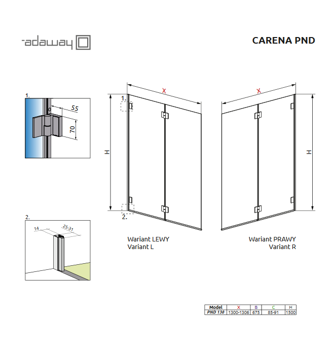 Carena PND - це серія орних шторок для ванни, що складається з однієї нерухомої частини і однієї дверцята, яка відкривається всередину ванни. Двері підвішена на латунні хромовані петлі з підйомно-опускним механізмом. Високоміцне загартоване скло товщиною 6 мм з покриттям Easy Clean забезпечать надійність експлуатації виробу і простоту в догляді за ним.Міцний алюмінієвий профіль, на який монтуються петлі гарантує стабільність конструкції, а елегантні хромовані деталі гармонійно доповнять композицію інтер'єру сучасної ванної кімнати.
