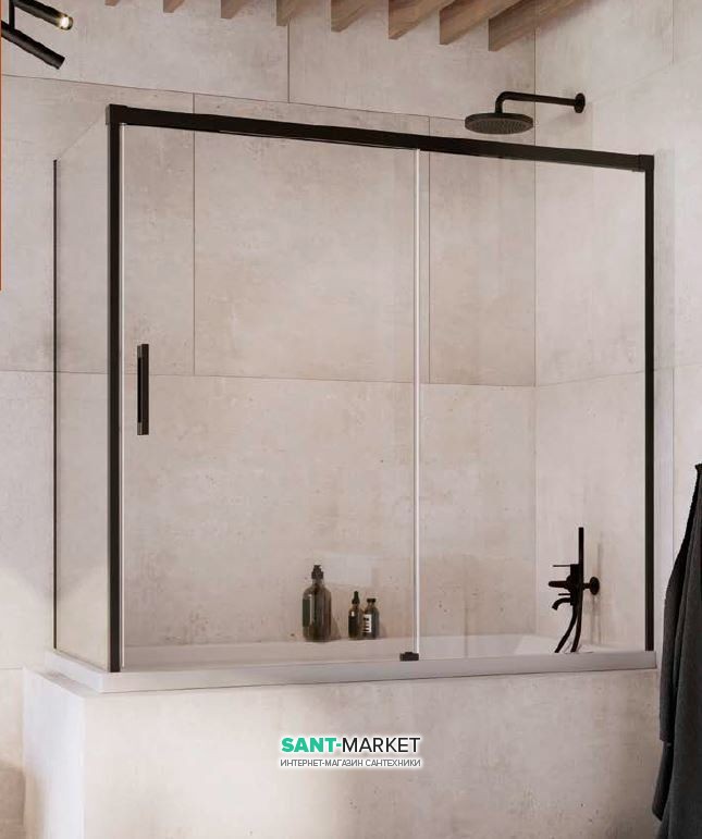 Модель Idea Black PN DWJ + S - частково обрамлена шторка на ванну з розсувними дверима і однією фіксованою панеллю в комбінації з бічною стінкою. Огорожа збирається з двох частин.