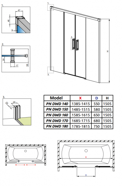 1) Шторка для ванни Radaway Idea PN DWD 150 прозоро скло / чорний