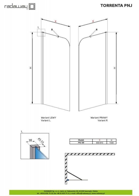 Torrenta PNJ - це серія душових одно- шторок з відкриванням назовні, двері підвішена на латунні хромовані петлі з підйомно-опускним механізмом і системою позиціонування дверей. Високоміцне загартоване скло товщиною 6 мм з покриттям Easy Clean забезпечать надійність експлуатації виробу і простоту в догляді за ним. Міцні алюмінієві стабілізатори гарантують стабільну конструкцію кабіни, а елегантні хромовані деталігармонійно доповнять композицію інтер'єру сучасної ванної кімнати.