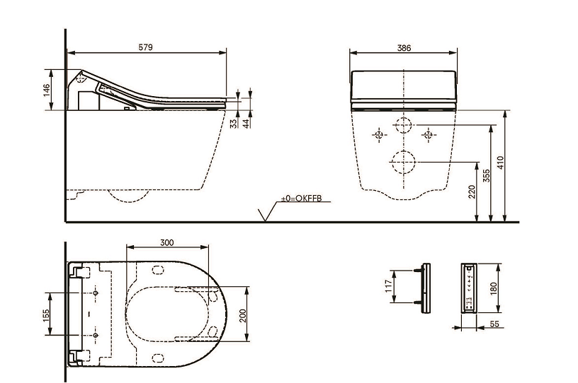 - температура води, сидіння, а також натиск струменя форсунки і її положення регулюються.