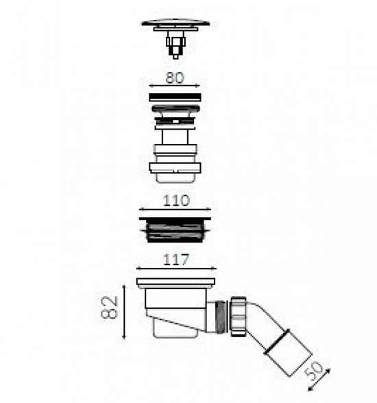 1) Сифон для душового піддону Marmorin click-clack пластик / латунь хром