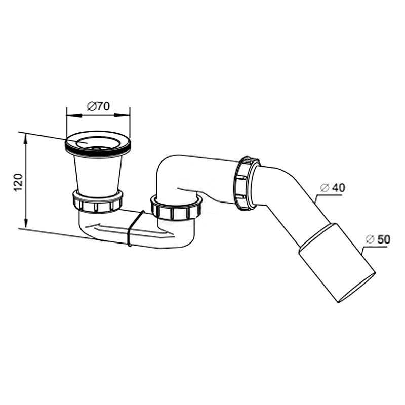 Сифон для душового піддону Prevex d52 мм зі зливною трубою 40/50 мм A402M50-01