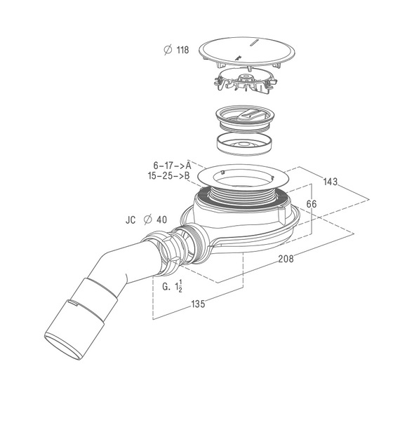 1) Сифон для душового піддону Radaway Turboflow TBXS хром