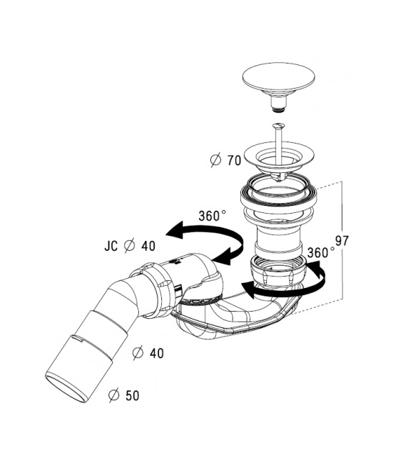 - Для душових піддонів із зливним отвором Ø 50 мм