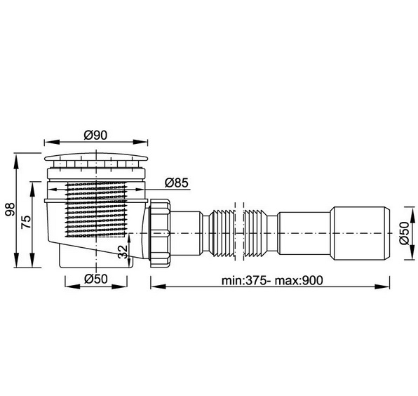 Сифон для душового піддону Styron поліпропілен хром STY-402-KJ